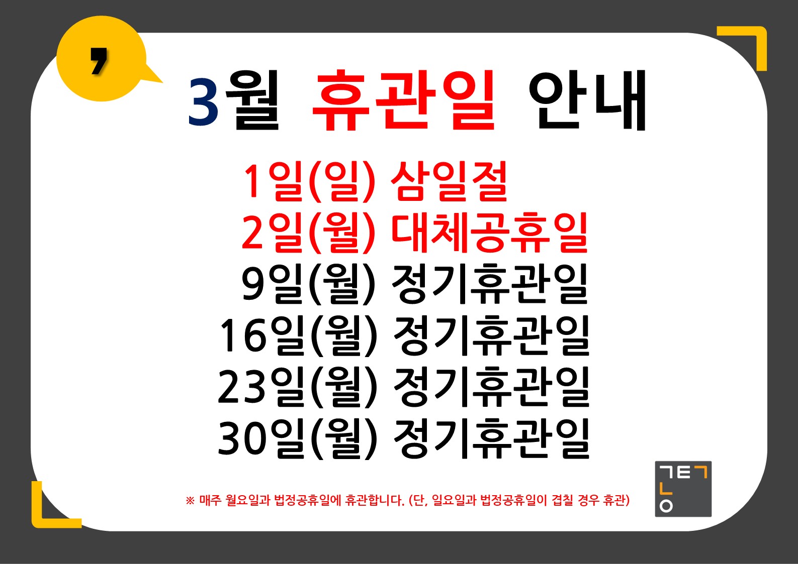 3월 휴관일 안내